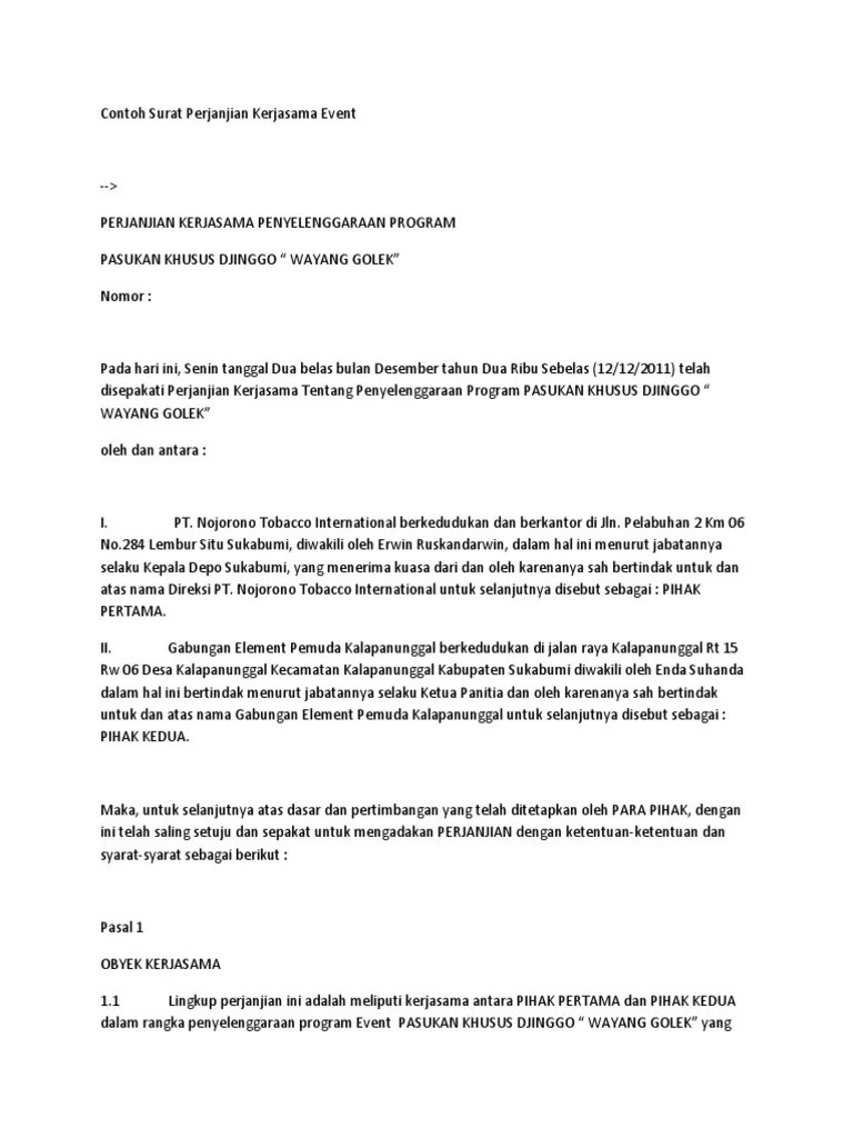 Mudah menggunakan uang digital serta mendapatkan promo cashback. Contoh, perjanjian kontrak kerjasama bisnis ikan teri. Telah disepakati suatu perjanjian kerjasama untuk program investasi produksi jilbab dan kaos pilkada , oleh dan diantara para pihak yang akan tersebut di . Partner adalah klien perusahaan terdaftar di program afiliasi yang. Karena memiliki fungsi yang amat penting dalam dunia berbisnis, memahami tentang pengertian dan contoh surat perjanjian kerjasama.